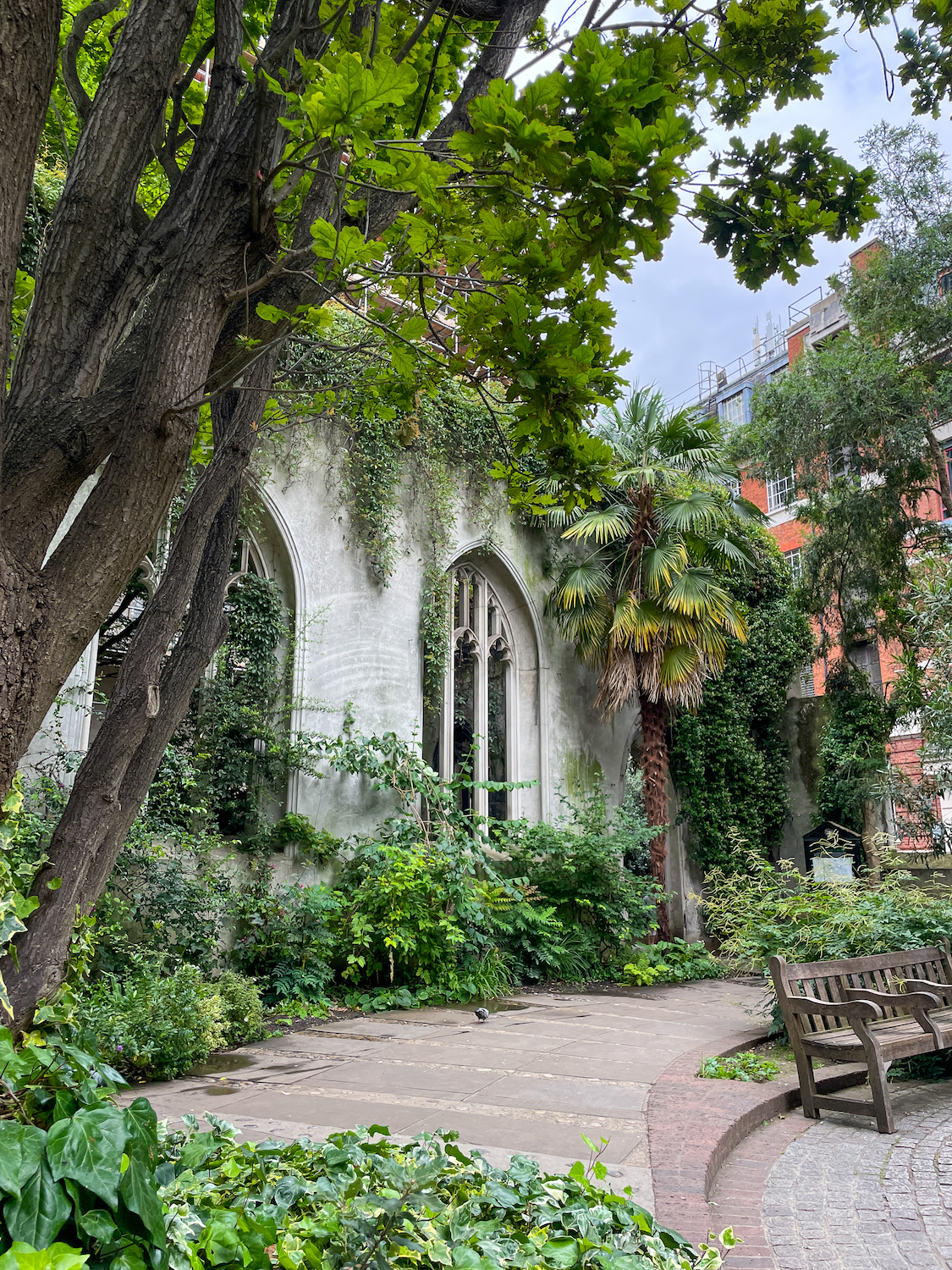 What remains of a St. Dunstan in the East, a church that was destroyed during the Blitz, has been converted into a quiet, peaceful garden. This was a lovely surprise – we did not expect to find a place like this in the middle of the hustle and bustle of the City.