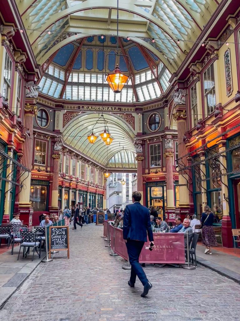 Tucked away between The Gherkin and The Walkie-Talkie, Leadenhall Market is a Victorian-style covered market. The building boasts a beautiful glass skylight, and every shop and restaurant dons an ornate red and green front, in keeping with the 19th-century style. Stéphanie would have loved to walk through Victorian London for a few hours.