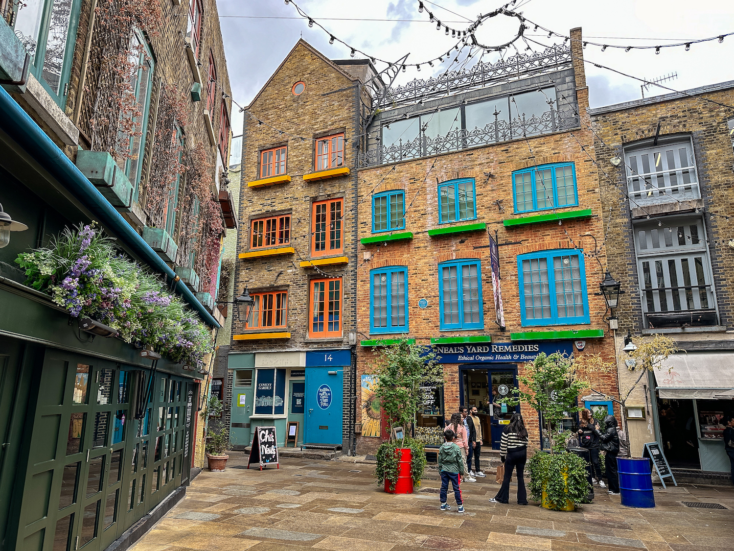 A hidden courtyard just a 5-minute walk from Covent Garden Market. We love the calm and pleasant atmosphere here, as well as the colorful façades of the buildings.