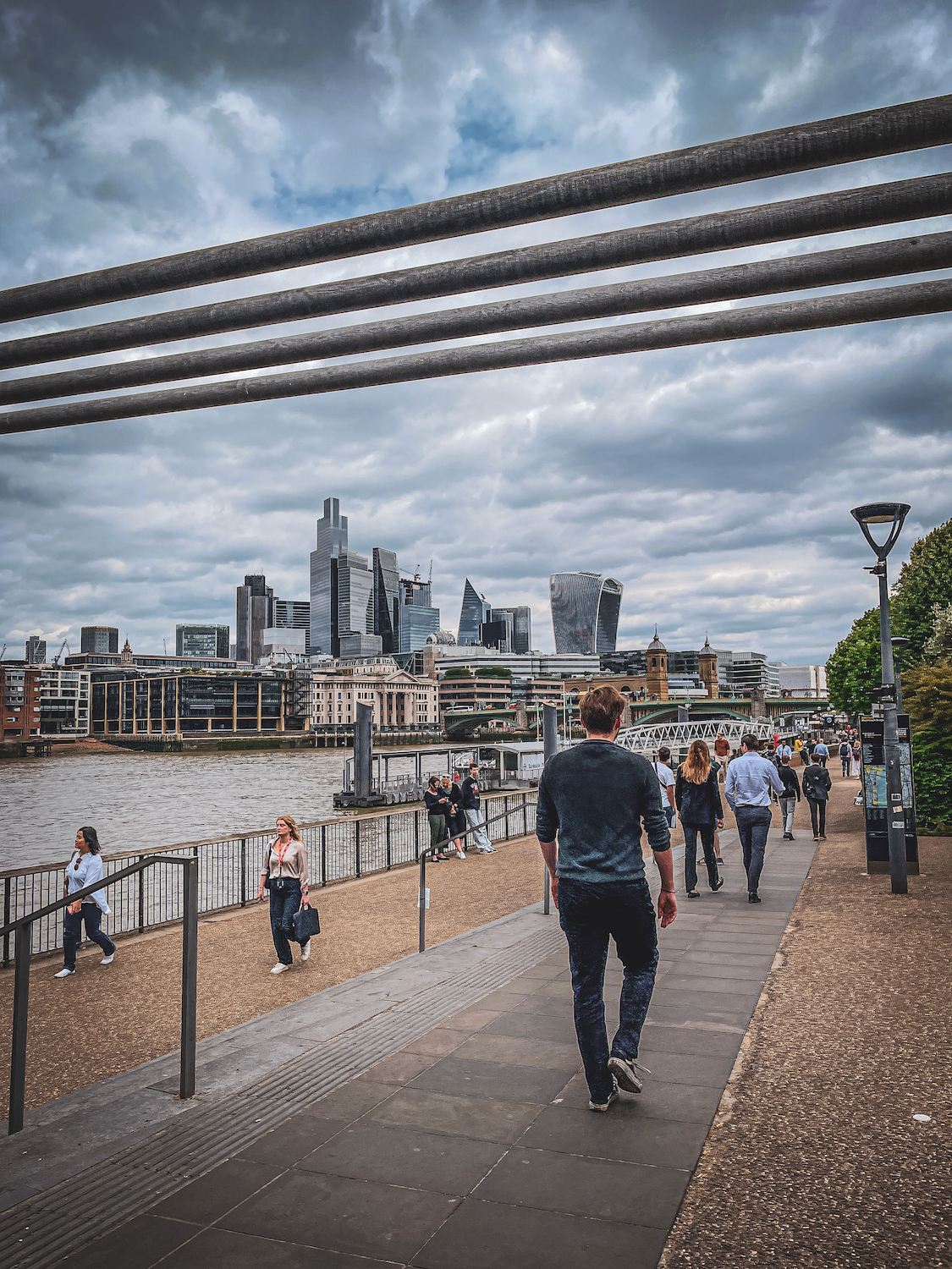 Our recommendation: Take your time to enjoy a leisurely walk along the Thames, from Westminster Bridge to Tower Bridge (around 4.5 km or 2.8 miles). This riverside promenade will take you past famous London sights such as the London Eye, Oxo Tower, Shakespeare’s Globe (a reconstruction of the Globe Theatre from Shakespeare’s time), Tate Modern, the skyline of the City, Millennium Bridge, the Tower of London, and Tower Bridge.