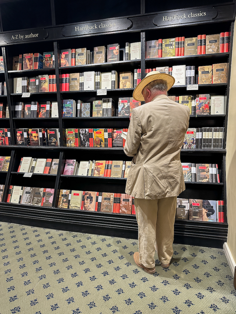 As we left the shop, we walked past an elegantly dressed man, carrying a bouquet of flowers, asking a shop assistant if she had a joyful book to recommend: Do you have something joyful, please?