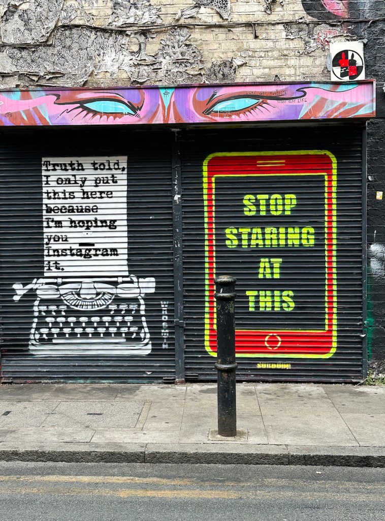 Walking around Shoreditch felt like a treasure hunt or a safari – we kept looking for street art pieces that would catch our attention, or that we found striking or touching.
