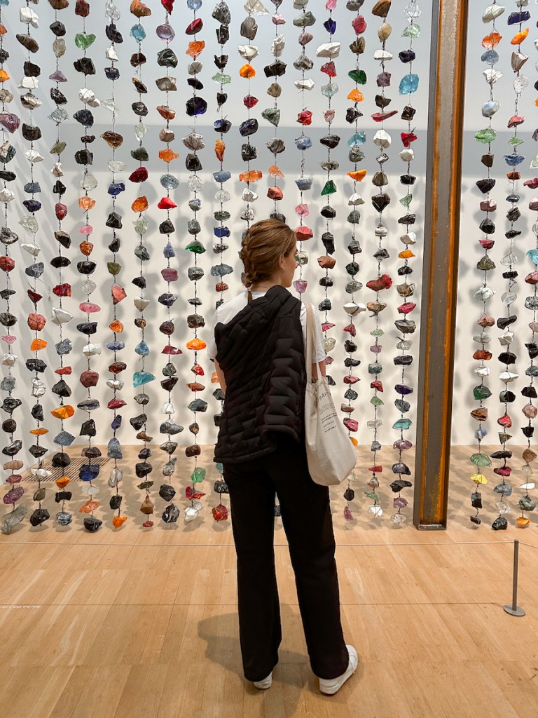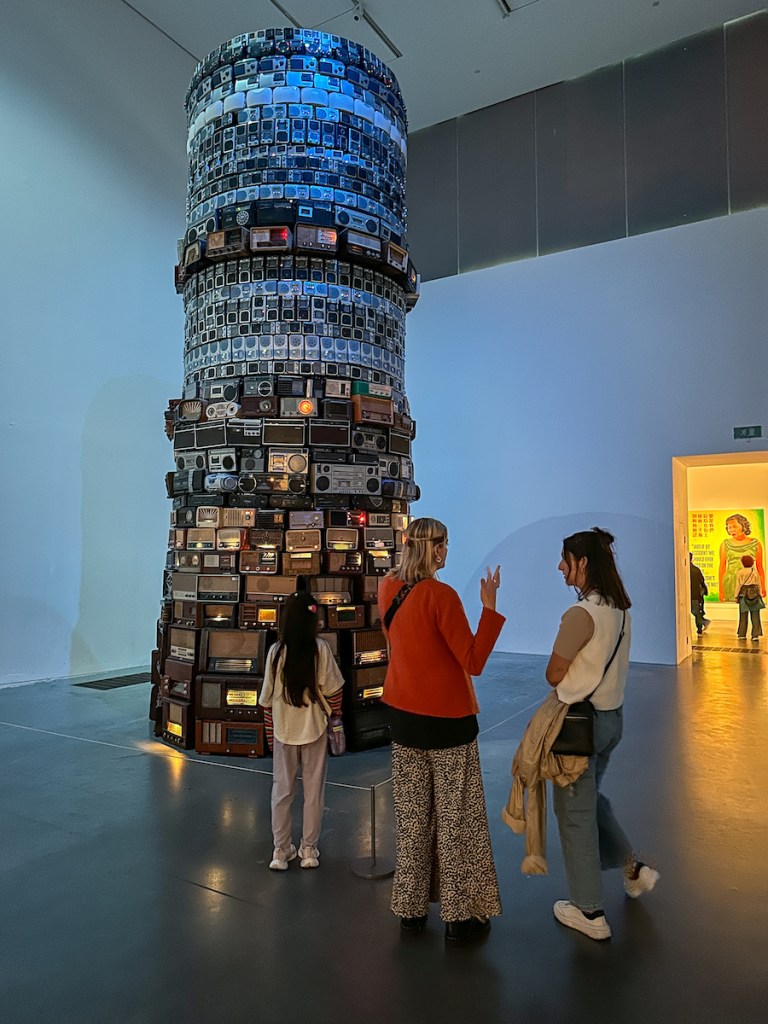 Set up in a darkened room, the installation entitled Babel by Cildo Meireles was incredibly compelling to us. A tower rising from floor to ceiling, made up of hundreds of old radios, each tuned in to a different station, created a gentle cacophony of voices and various musical genres. The artist describes the piece as a tower of incomprehension.