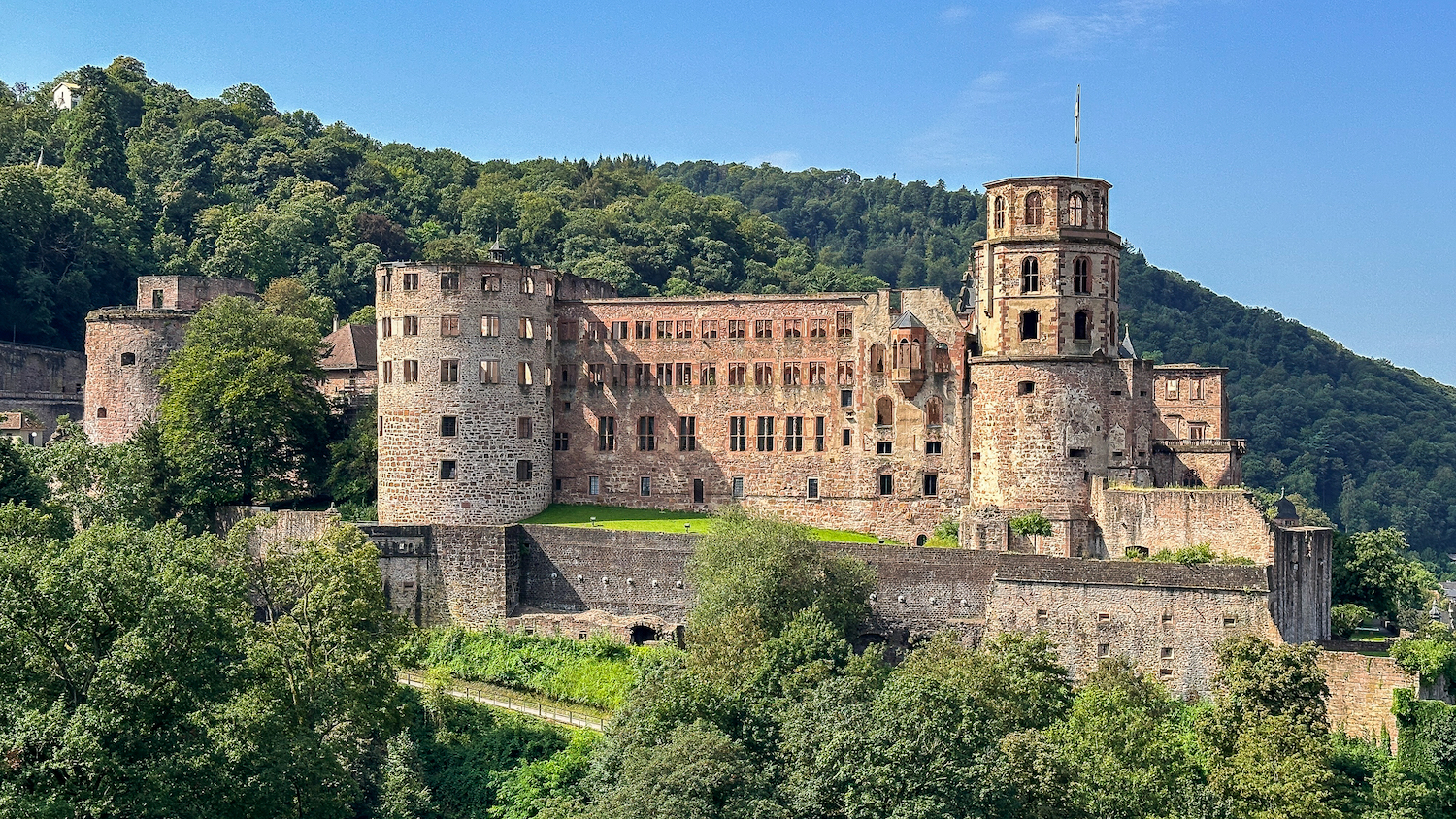 Perched atop the hill called Königstuhl (King’s Seat), Heidelberg Castle is the town’s most iconic landmark. Some of its pink sandstone façade is in ruins, while other parts, which are well preserved, are a mix of Gothic, Renaissance and Baroque styles.