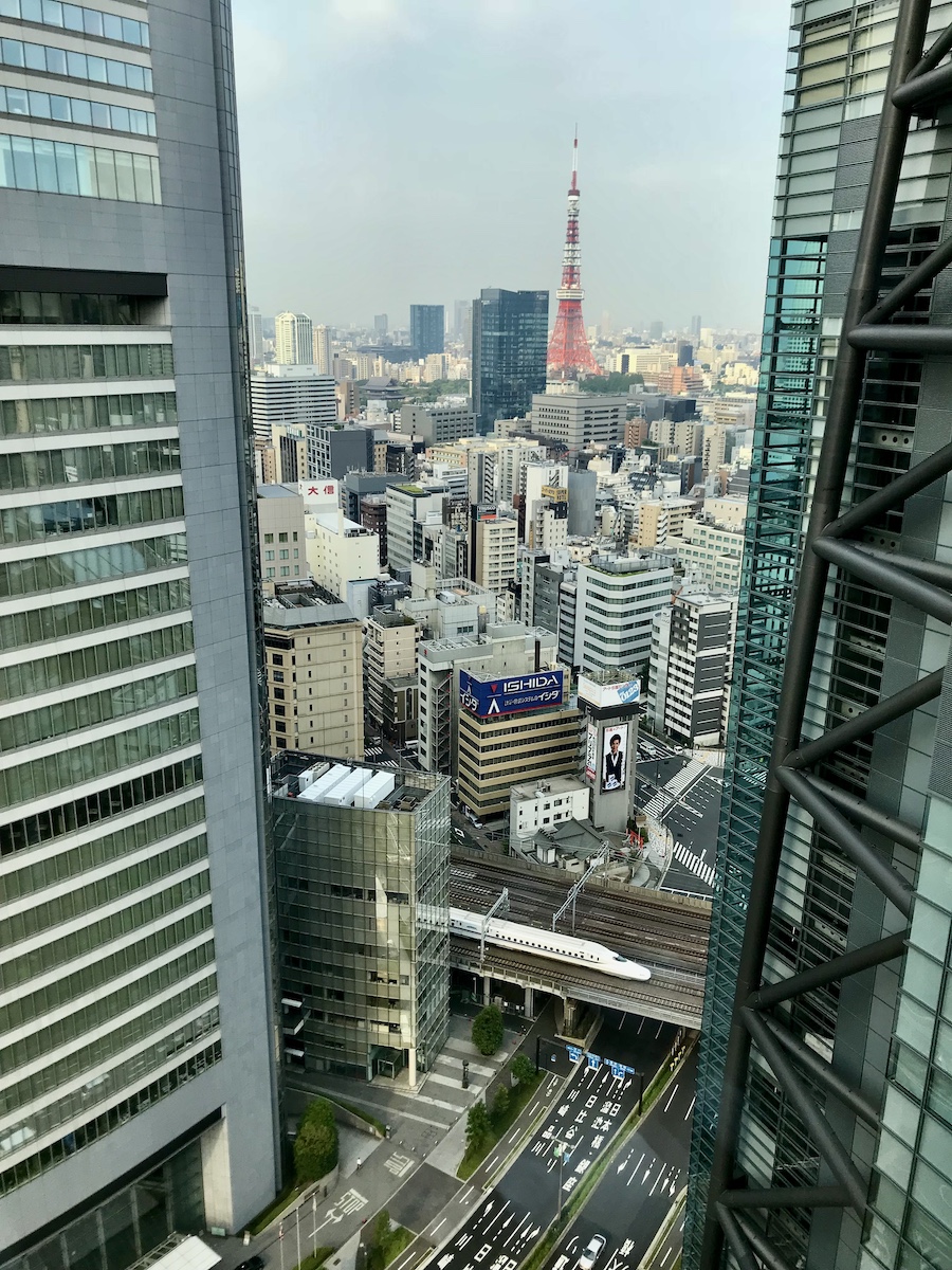 The iconic red and white silhouette of Tokyo Tower stood out among all the office buildings. What an odd feeling to have a direct view of an emoji🗼!